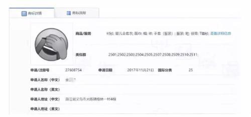 但简单、生动的聊天表情被大量滥用的情况不止这一例。去年9月,"捂脸"表情被申请注册商标。中国商标网信息显示,该商标的申请人名叫金某平。商标的核定使用商品/服务项目为第25类,涵盖服装、婴儿全套衣、鞋帽袜、领带围巾等。