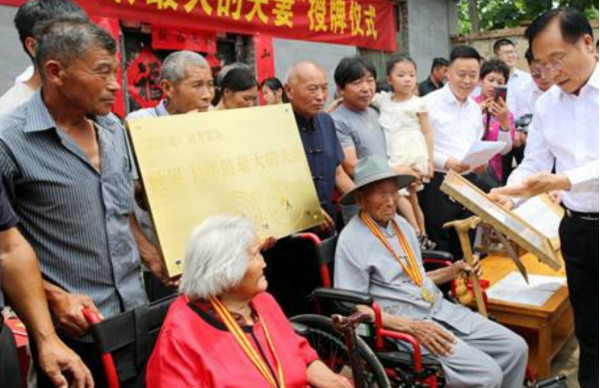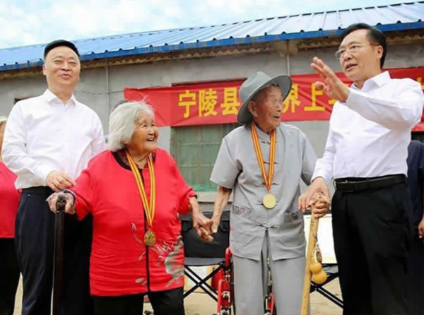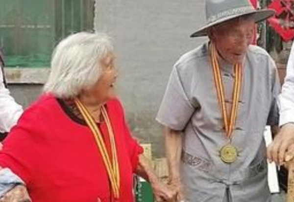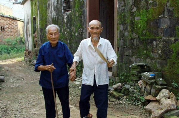 夫妻两人一位是120岁的老人,另一位是115岁的老人,两人不仅身强体壮,还拥有了属于自己的来孙。
