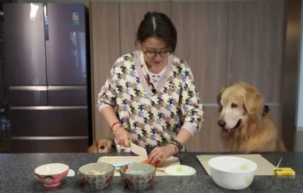 不难发现,周海媚把宠物当成了家人对待,对待小狗像孩子一样宠爱,她给狗安排了专门的房间,还安装了专用浴缸,亲自在家给狗洗澡,有一个大厨房给狗做饭,对于每一只狗的状况如数家珍。