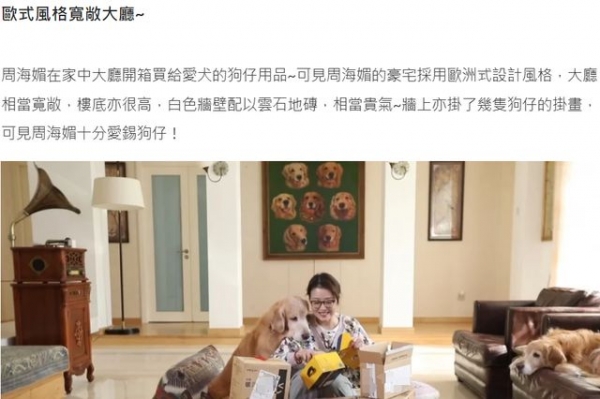 从周海媚日常分享的视频看,她对独居生活状态十分满意,闲下来就陪狗玩耍,家中装饰都是自家宠物,每天买买买坐在宽敞的大厅里面拆快递。