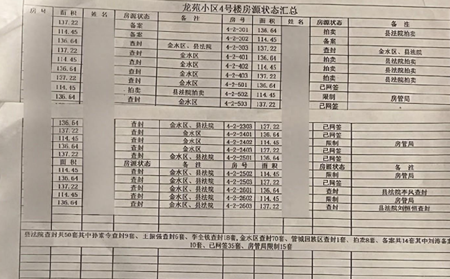 龙苑小区4号楼房源状态汇总