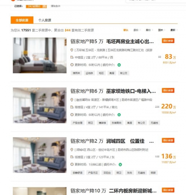 诸葛找房平台显示,过去24小时,昆明降价的二手房源就有344套,降价幅度,普遍在1-10万左右。
