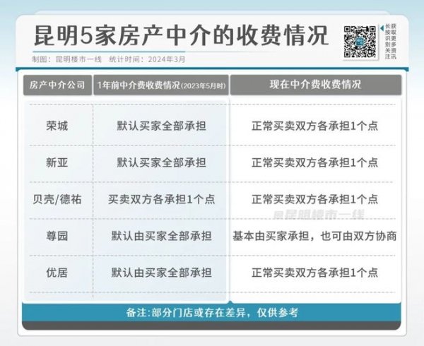 去年5月,昆明市场上除德祐外,其余的尊园、荣城、新亚等公司,中介费都还是买家全部承担。 但现在,楼市君咨询一圈发现,荣城、新亚、优居等都开始"双边收佣",即买卖双方各承担一半中介费用。