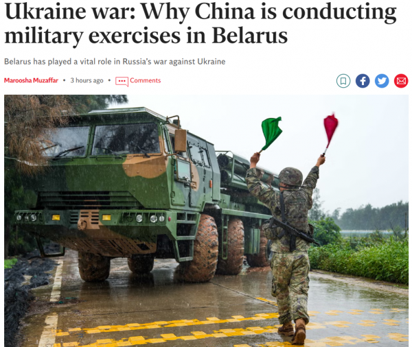 英国《独立报》标题:乌克兰战争:中国为何在白俄罗斯举行军事演习?