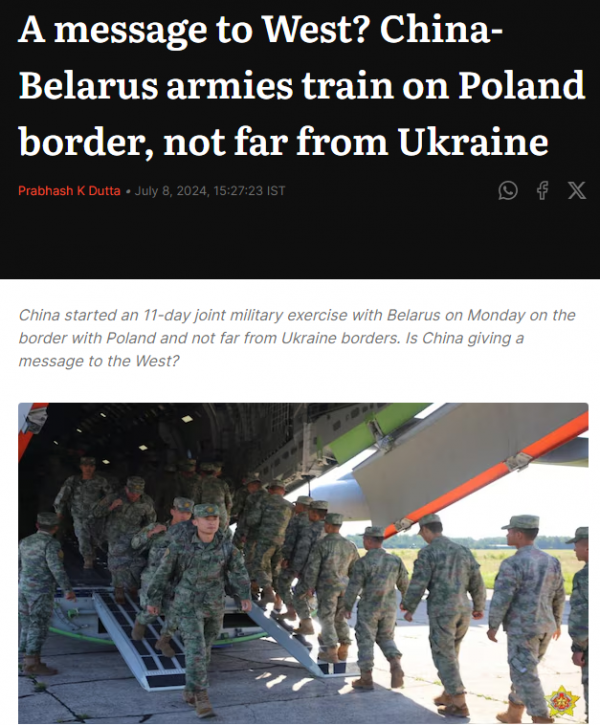 英国《第一邮报》说,周一,中国与白俄罗斯在与波兰接壤、距离乌克兰边界不远的地方开始了为期 11 天的联合军事演习。"中国是在向西方传递信息吗?"