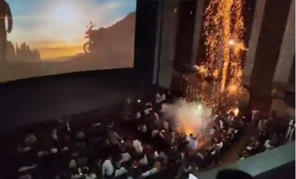 在被惊恐的观众拍摄下的视频中,可以清晰地看到剧院内惊慌失措的场景。当时,观众们正聚精会神地等待着萨尔曼·汗出现在屏幕上,突然间,一连串的爆炸声响起,烟花被点燃并向空中喷射。恐慌的人群不分昼夜地冲向紧急出口,黑暗的房间被橙色的爆炸照亮,火花四溅。尖叫声和欢呼声此起彼伏,剧院瞬间变成了一片混乱的"战场"。