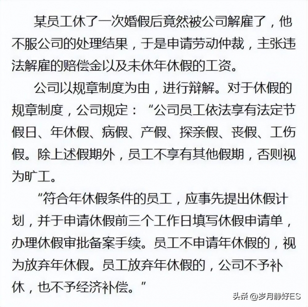 二审中,上海一中院审理此案,法官们认为小钟在请假未被批准的情况下数日未上班属实,但是他的请假事由是合理的,符合我国传统风俗习惯。而且小钟为举办婚礼曾多次向公司请假,并对请假原因进行了充分解释,说明自己的困难,并表示愿意请休事假。综合考虑小钟的请假天数和原因,法官们认为他的请假是合理的。