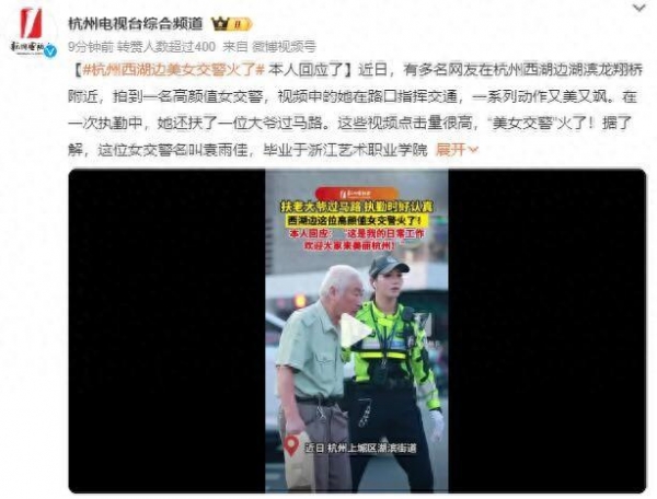 杭州西湖边美女交警火了 本人回应:这就是我们的日常工作
