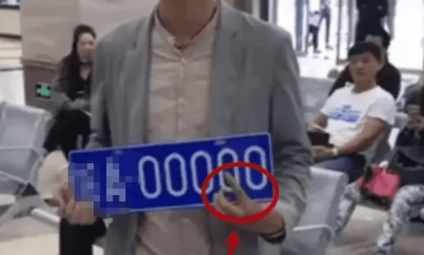 刘先生非常郁闷,拿着车牌拍照的时候,故意把手指放在英文字母Q的位置上,将这个字母右下角的部分挡住。刘先生拍照的时候姿势非常怪异,他的手指移动不动将英文字母Q挡住,动一下就可以几十万。