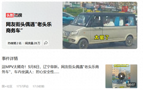 5月6日,有网友在辽宁阜新街头看到了一辆7座的老头乐,这辆老头乐开在路上很"拉风"。不仅看起来很高大上,同时还配有小窗帘,另外我们看视频中还看到里面坐满了人,拍摄视频的网友感叹,"太狠了"。