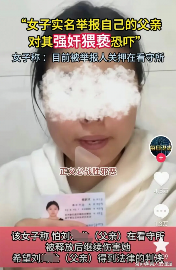 2024年3月24日,一段内蒙古赤峰18岁女子发出的视频在社交媒体上广泛传播,她实名举报从十二三岁时开始遭受亲生父亲多次性侵和猥亵,同时她还指责奶奶对此事视而不见。这一举报引起广泛关注,警方也迅速对该案展开了调查。