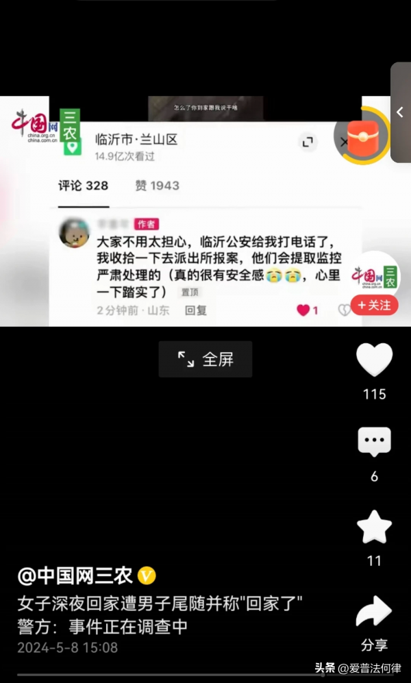 严惩!穿成什么样也不是尾随的借口!山东临沂,一女子在社交媒体发布视频,表示自己深夜时分回家遭陌生男子尾随,相关视频引发观众和网友热议。