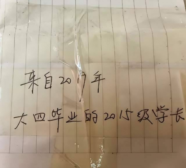 收到信的白同学称,那天在床底找东西,偶然发现这张纸条,感觉很惊喜也很意外。自己感觉是进行了一场跨时空对话,像19年的风吹到了23年,有一种时空交错的感觉。