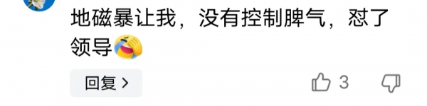 网友们身体受到地磁暴的影响都各不相同,有甚家更是受到地磁暴直接怼了领导。