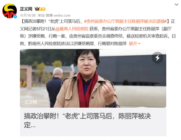 值得注意的是,陈丽萍的落马并非孤立事件,其上级贵州省委原书记孙志刚因涉嫌严重违纪违法刚被查,仅仅两个月后,陈丽萍也步其后尘。