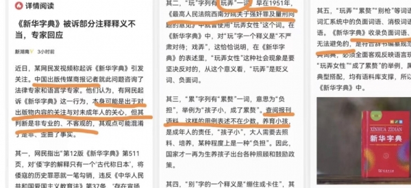原因就是几天前有两名教授。一个叫钱一,另外一个叫刘振成,他们本着对出版物内容的关注和对未成年人的关怀,他们称《新华字典》涉嫌冒犯女性,歧视儿童,并且违反了爱国主义教育。