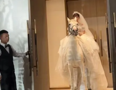 太炸裂!婚礼现场,新娘骑白马缓缓走向新郎