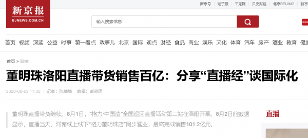 之后她于2020年的8月在洛阳举办了一场"格力·中国造"的全国巡回直播第二站。