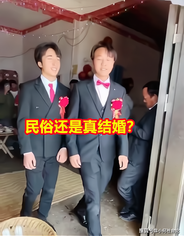 看到这大家可能会疑惑,为何这里结婚是两个男人"拜堂",难道是两兄弟一起结婚吗?