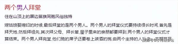 据央视网早年报道,在云南省屏边苗族有这样一个习俗,农村人结婚拜堂必须由两个男人来完成,新郎与伴郎拜堂,而新娘则坐在一旁看着伴郎代替自己拜堂。