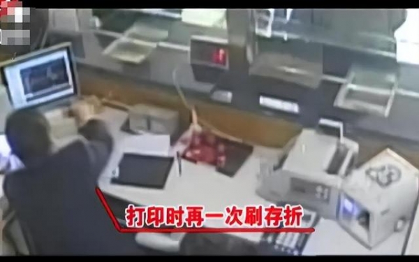警方通过调取的银行监控发现,当这些受害人在存款时,祝某在前期操作都是合规的,但就在打印对账单的时候,祝某趁着受害人不注意的情况下,再一次刷了存折,这时就需要受害人再次输入密码。