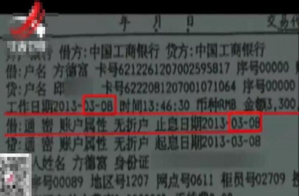 警察也调取了方先生的银行流水账单,很明显方先生在2013年存入钱款的当天,这笔钱就又被转走了。