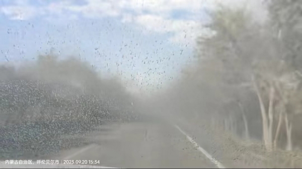 9月20日,内蒙古呼伦贝尔市,有市民在社交平台发布视频称,从呼伦湖驾车驶出的路上遭遇大量不明飞虫。该视频显示,车辆行驶过程中密密麻麻的飞虫撞上来,影响到视线。