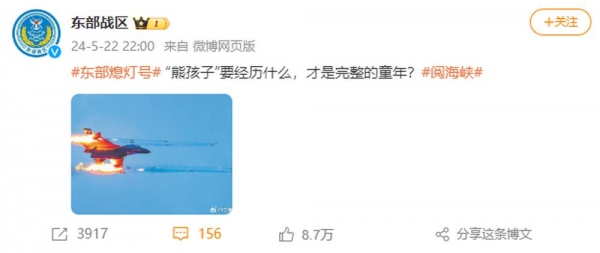 5月22日晚,@东部战区 发文:"熊孩子"要经历什么,才是完整的童年?