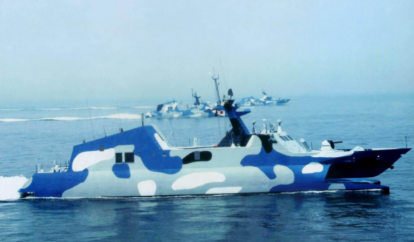 022导弹艇长42.6米、宽12.2米、吃水1.4米,满载排水量220吨,最高航速在50节左右,同样可以搭载12-14人。在装备方面022导弹艇装备一座630型近防炮系统和2座4联装火箭干扰弹发射装置,并且可以搭载8枚射程在180公里的"鹰击"-83反舰导弹,可用来攻击超视距外,以及驱护舰以上等大中型水面舰艇。