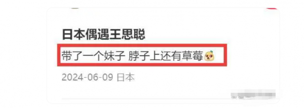 爆料者还称,王思聪还带了一个妹子,脖子上还有草莓,似乎刚亲热完,女方神似孙一宁。