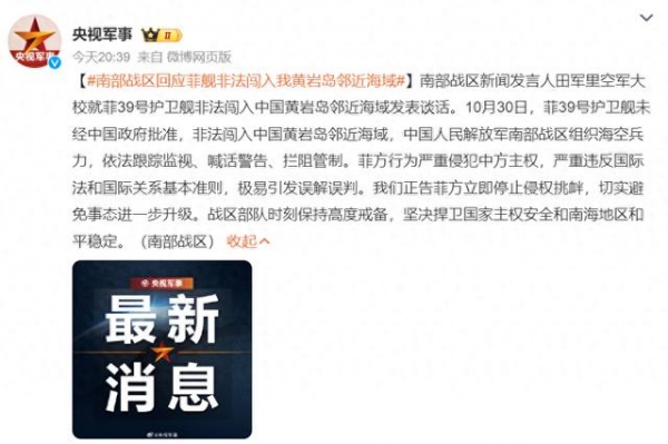 晚间,解放军南部战区发布通告称,菲律宾海军39号护卫舰在当天未经中国政府批准,非法闯入中国黄岩岛临近海域,解放军南部战区组织海空兵力,依法对其进行了拦阻驱离。当看到这则消息之后,笔者最先感到的是震惊,想不到实力弱小的菲律宾竟然敢在黄岩岛问题上对中国动用军舰了,这是一个非常危险的信号。要知道此前在南海仁爱礁、黄岩岛挑事的大都是菲律宾海警以及渔船,此次菲律宾海军直接上场,这到底是哪来的勇气?