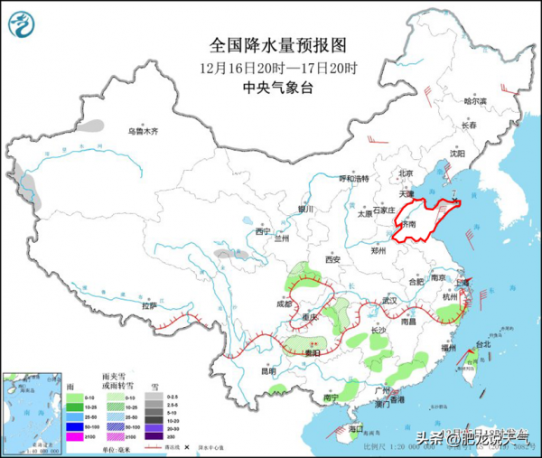 明天(12月17日)天气:根据中央气象台发布的全国降水量预报图,12月16日20时至17日20时,山东半岛局地有中到大雪(5~7毫米),主要分布在烟台、威海等地部分地区。