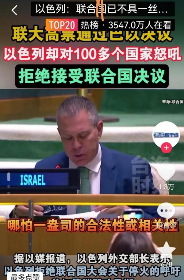 以色列驻联合国代表更是声称联合国已经失去了合法性。这一决定引起了广泛的关注和争议,显示了巴以冲突仍然是一个备受关注的国际问题,需要国际社会共同努力来解决。
