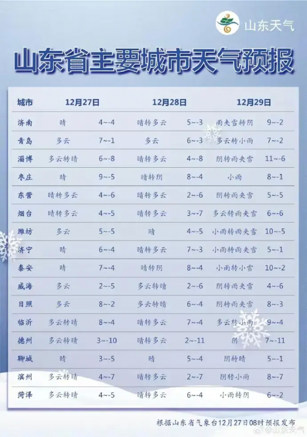 而在未来的三天,山东还将迎来一场大范围的雨雪天气。全省天气将转为多云转阴有小雨或雨夹雪,伴随着南风3级左右的微风。最高气温将有所回落,北部沿海地区预计在3℃左右,而鲁南地区则可能在7℃左右。在这场雨雪中,不仅会带来湿冷的寒意,也可能会对交通产生一定的影响。因此,大家出行时一定要密切关注天气变化,做好防范措施。