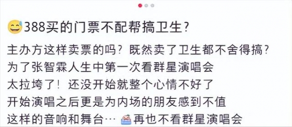 对此,网友们纷纷表示,"这真的影响看演唱会的心情!""好歹给清理干净吧!""这主办方不尊重人,过分了!"