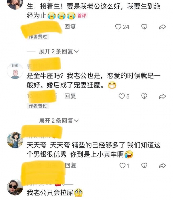 也有网友羡慕女子嫁了个好男人。很多男人明知道妻子在家带孩子累,却还要闭眼说瞎话,不认同妻子的付出,那才是妻子最崩溃的原因。