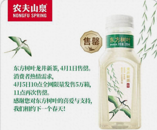 果不其然,随着热度的消减,农夫开始再次发力,直接回到了公众的视野中,在4月1日的时候,农夫的东方树叶龙井新茶,就在网上掀起了空前高涨的热情。