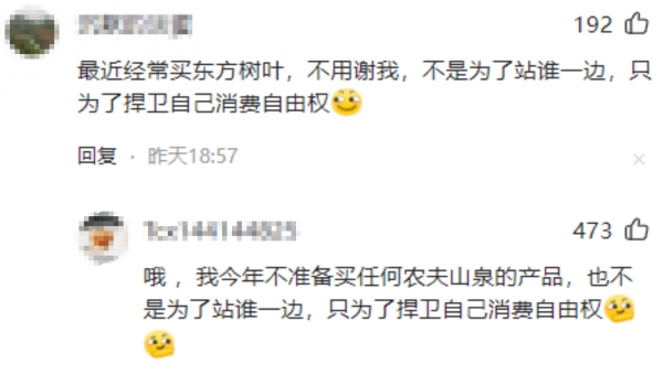 有的网友也是十分清醒,表示最近一直喝东方树叶,不是为了站在谁得一边,只是自己喜欢而已。