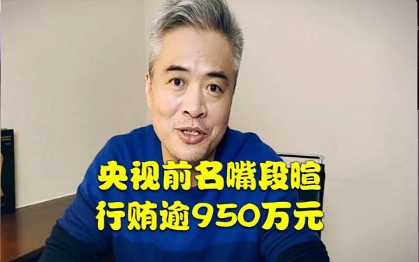 12月30日,多家媒体报道,中央电视台前知名主持人段暄被法院认定:向体育总局原高官行贿逾950万。