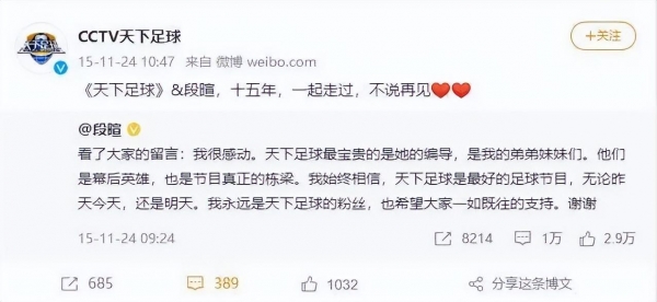2000年11月27日,段暄的命运齿轮转动了,《天下足球》正式开播。他也成为了中国家喻户晓的足球节目主持人。