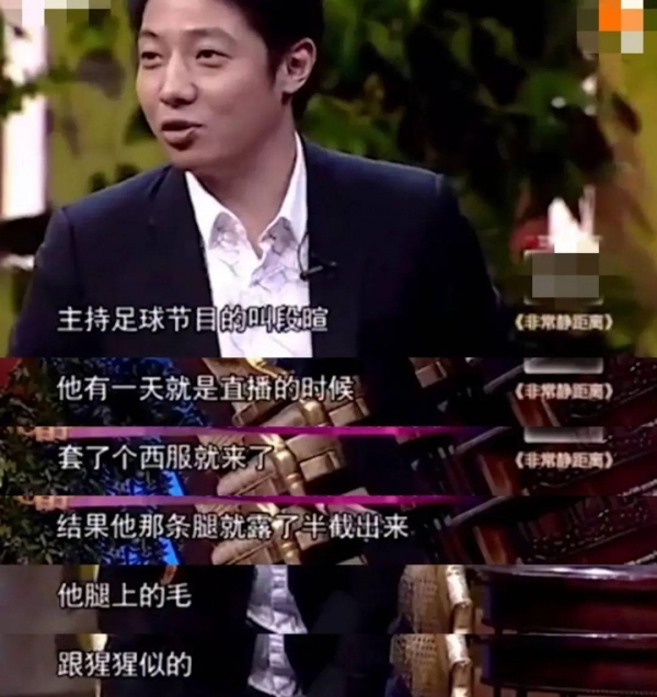 甚至名嘴撒贝宁都曾吐槽过,"西服下面是短裤,腿毛跟猩猩似的。"