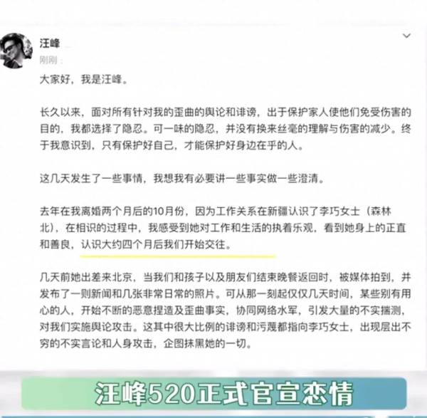 原来汪峰才是纯正的恋爱脑!汪峰官宣新女友森林北,字里行间对森林北的维护溢于言表,大男人肯担当的形象跃然纸上。
