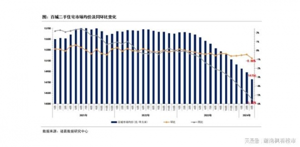 三是一季度房价下跌。诸葛数据显示,2024年3月100个重点城市二手住宅市场均价为14756元/平方米,环比下跌0.88%,环比跌幅较上月扩大0.43%,同比下跌5.5%,同比跌幅较上月扩大0.75%。3月,均价总体仍处于继续下行阶段。