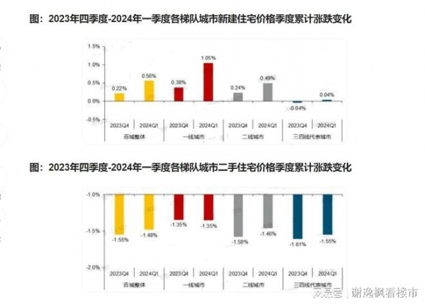 中指数据显示,2024年一季度百城新建住宅平均价格累计上涨0.56%,较2023年四季度扩大0.34%。一线及二线城市新建住宅价格分别上涨1.05%和0.49%,涨幅分别扩大0.67%、0.25%,三四线城市由跌转涨,涨幅为0.04%。