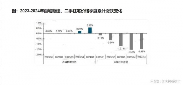 2024年一季度百城二手住宅平均价格累计下跌1.48%,较2023年四季度收窄0.07%。一线城市二手住宅价格累计下跌1.35%,二线城市价格累计下跌1.46%,跌幅收窄0.12%,三四线价格累计下跌1.55%,跌幅较2023年四季度收窄0.06%。