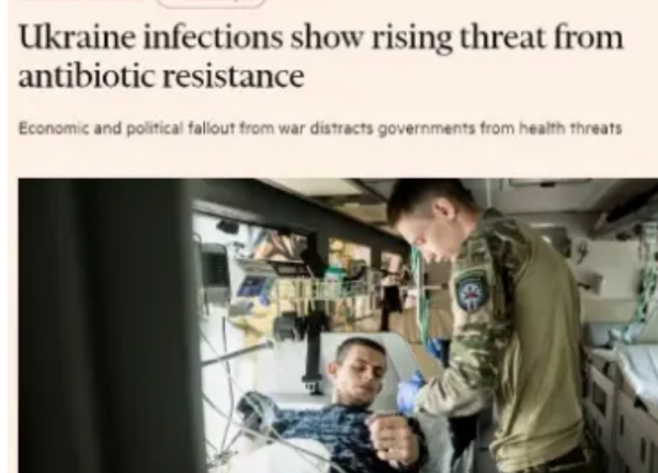 "耐药感染乌克兰传播"这个话题,最早是8月份英国《金融时报》披露,称在德国的一家美军医院中,一名受伤的乌克兰士兵被发现对几乎所有可用的抗生素都有耐药性。