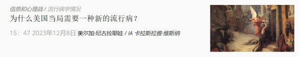 10月至11月儿童支原体肺炎感染出现后,美西方媒体在美国主导下,也掀起了一股炒作浪潮,称"中国儿童支原体肺炎",妄图通过这波儿童支原体肺炎把中国定性为"罪魁祸首"。