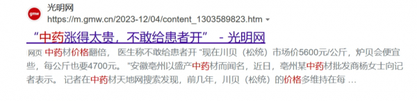 如近日中药价格再次上了热搜。为何出现如此情况?还不是在新冠大流行过程中,中医中药再次立了大功,阻断了美西方医药医疗在中国疯狂收割韭菜和生命。多次教训后,美西方传统的抹黑手法已经不那么见效了,所以他们通过金融战模式,以资本渗透炒高中医中药模式,让中国用不起中医中药,迂回进攻突破中国生化战防线。