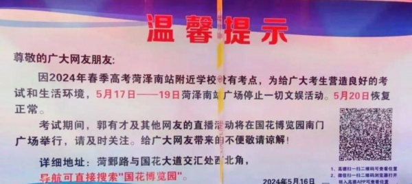 17日起3天,菏泽南站广场暂停一切文娱活动,郭有才直播挪到→