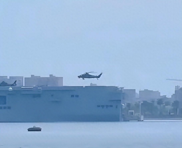 从国内社交媒体流出的相关视频和照片来看,日前在解放军海军075型两栖攻击舰首舰"海南舰"的飞行甲板上,隶属解放军陆军的直-10武装直升机和疑似直-8L运输直升机等机型,进行了起降和甲板调度训练。很显然,这是一次跨军兵种的协同演练,而"075型两栖攻击舰+直-10武装直升机"的组合,无疑有着极强的针对性和指向性。没错,分别来自海军和陆军的这两大主战装备的结合,就是在为跨海遂行两栖登陆作战做准备。